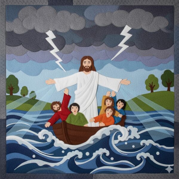 Los discípulos, que eran pescadores expertos, subieron al bote con Jesús y comenzaron a navegar. Jesús, agotado, se recostó en la parte de atrás del bote y se quedó dormido.